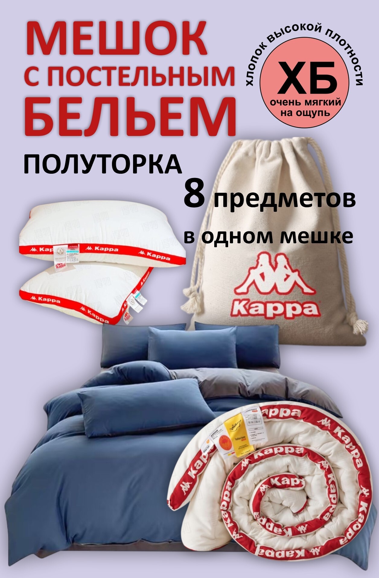 Комплект постельного белья от бренда Kappa 1,5 спальный изготовлен из выстиранной прессованной хлопчатобумажной ткани. Набор постельного белья от Kappa практичный, экологичный, не садится и сохраняет первоначальный внешний вид на долгое время. Выдерживает огромное количество стирок. В набор входит: две наволочки на подушки, пододеяльник и простынь.